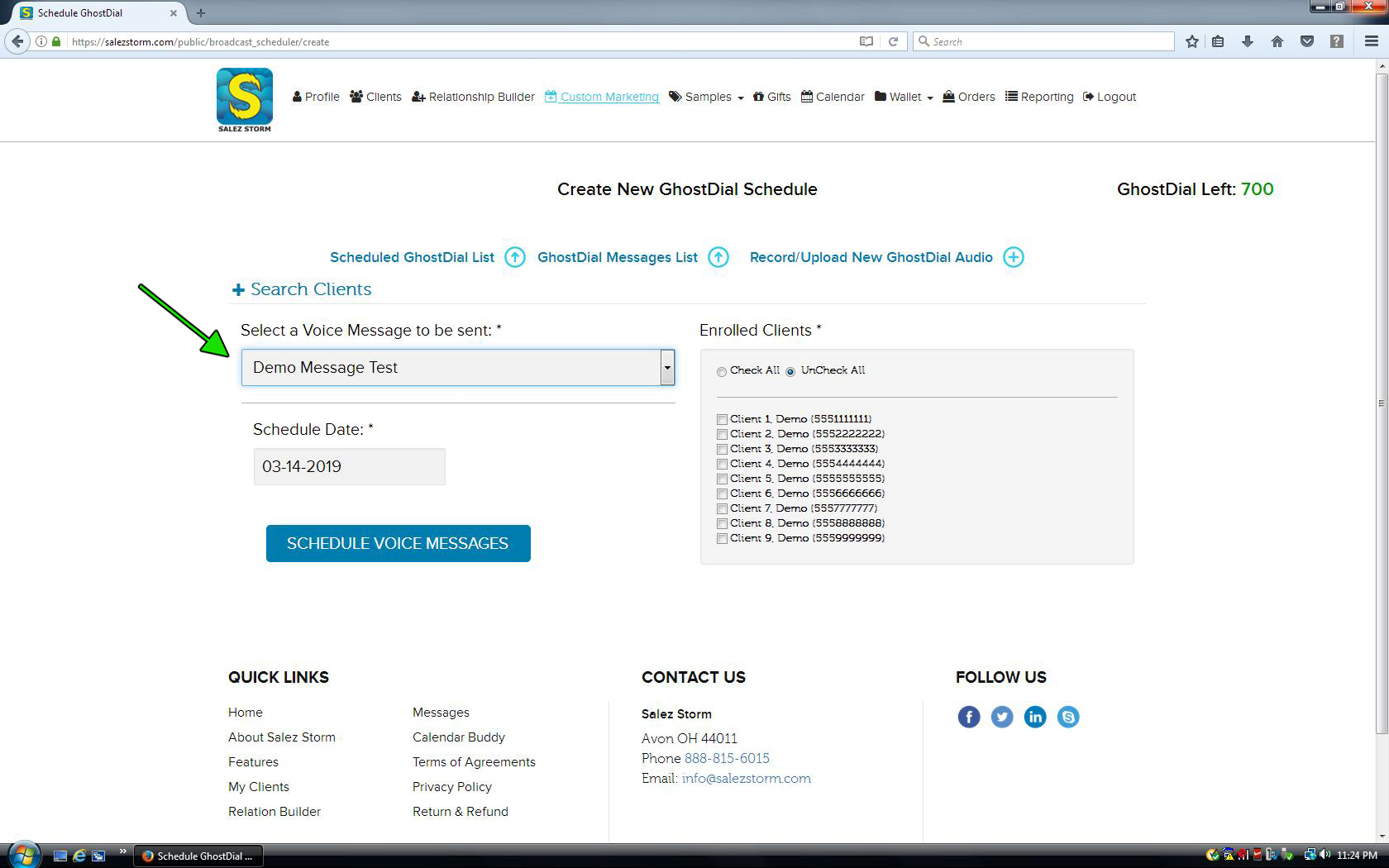 Choose the clients that you would like to send your message to. A nice feature of GhostDial is that you can send a voicemail to a large number of individuals all at the exact same time.