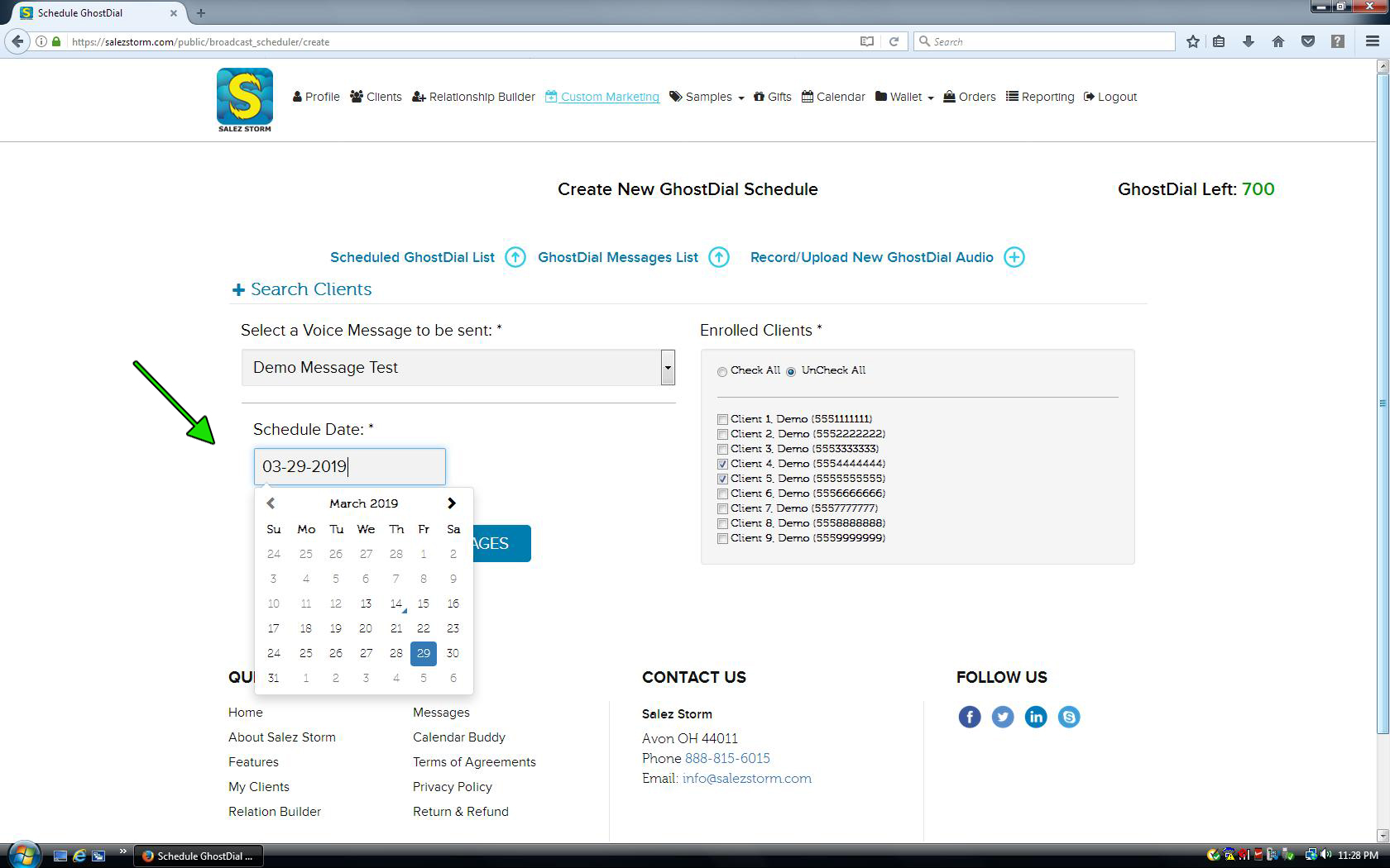 Choose a date and time that you want your GhostDial message to be sent using the “Schedule Date” selector.