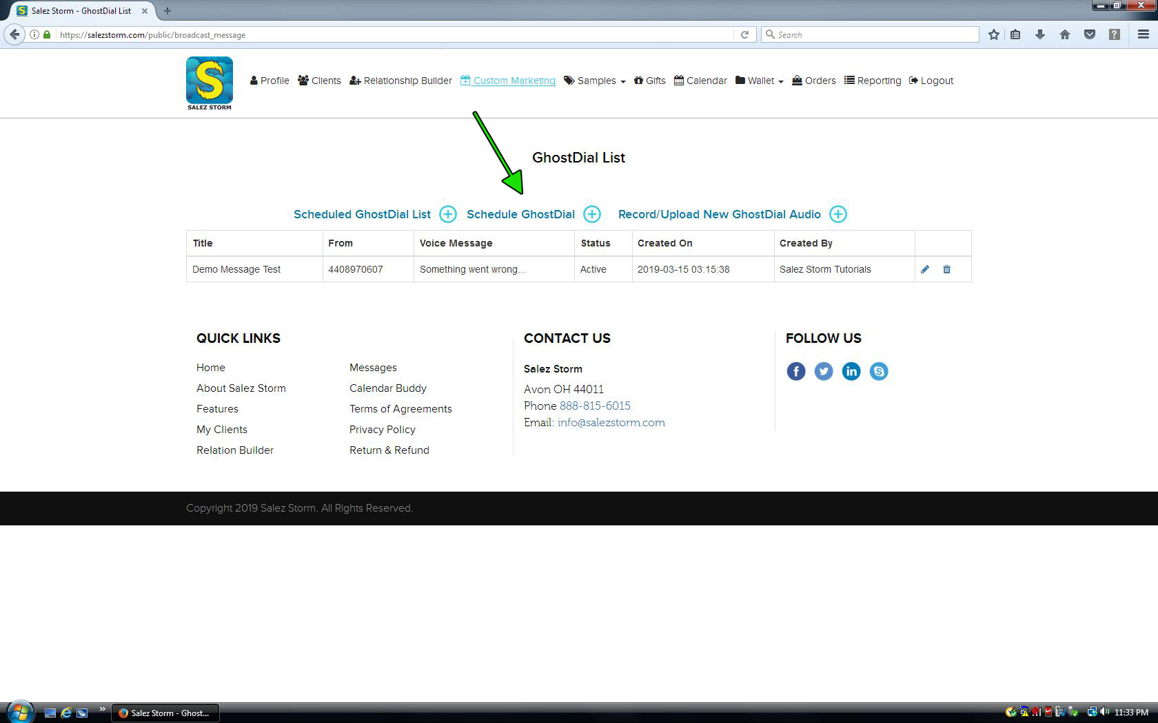 On this page, you will see a list of all your saved GhostDial Messages. Click on the link titled “Schedule GhostDial”.