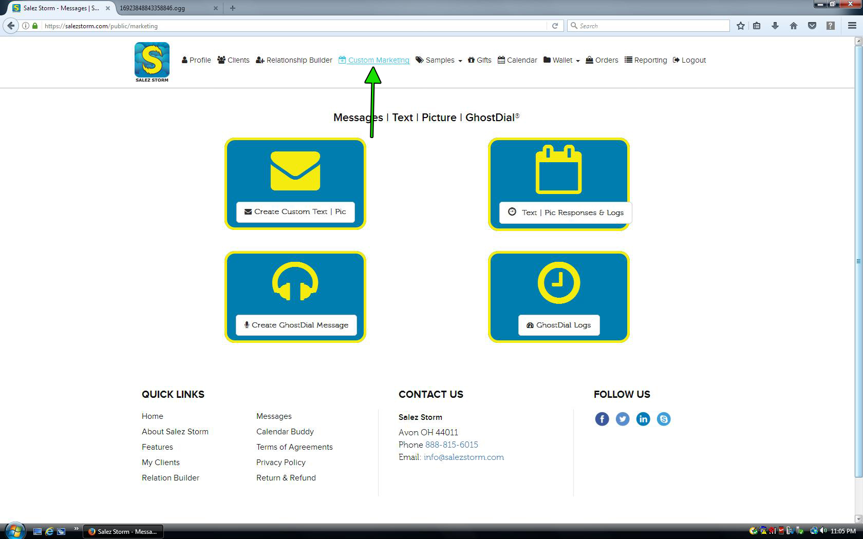To schedule a message, click the link at in main navigation menu titled “Custom Marketing”.